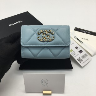 샤넬 19 플랩 카드지갑 램스킨 금장 소라 AP1790
