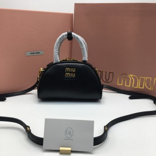 미우미우 레더 탑 핸들백 스몰 블랙
