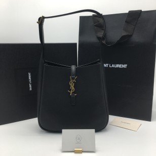생로랑 LE 5 A 7 스무스레더 스몰 호보백 블랙 713938