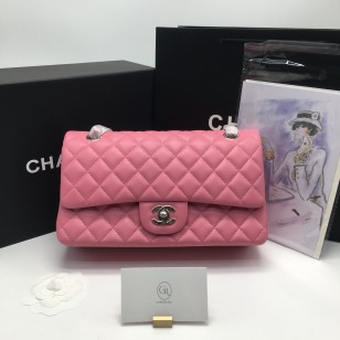샤넬 클래식 플랩 숄더백 램스킨 미듐 핫핑크
