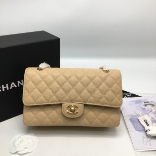 샤넬 클래식 미디움 캐비어 숄더백 베이지