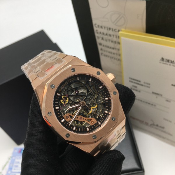 Audemars Piguet 오데마피게 로얄오크 15407OR.OO.1220OR.01 스켈레톤 다이얼 브레이슬릿 오토매틱 무브…