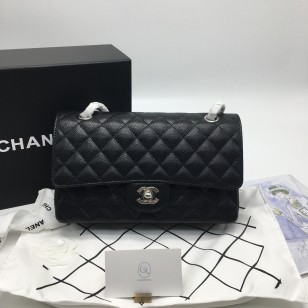 샤넬 클래식 미디움 캐비어 블랙 은장