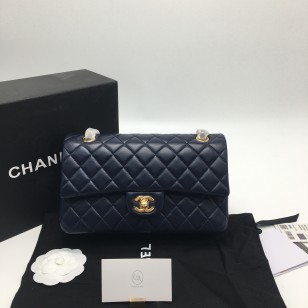 샤넬 클래식 미디움 램스킨 다크네이비 금장
