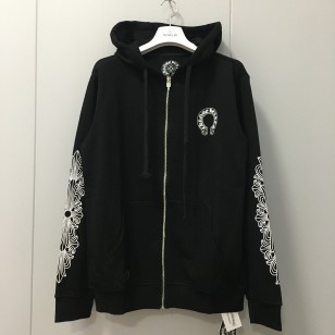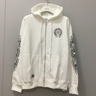 크롬하츠 홀스슈 플로랄 플리스 집업 후드 화이트