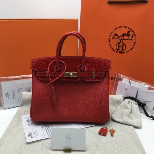에르메스 버킨백25 플래그레드 금장 악어가죽 핸들