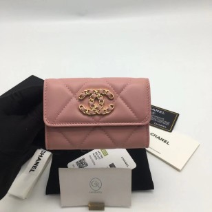 샤넬 19 플랩 카드지갑 램스킨 금장