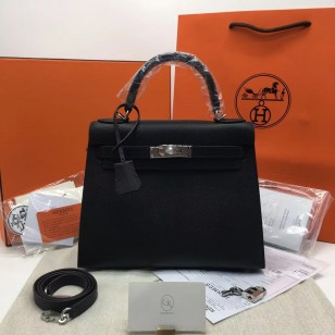 에르메스 켈리백28 블랙 앱송 은장