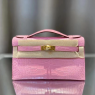 • 에르메스 켈리 포쉐트 핑크 금장 악어가죽