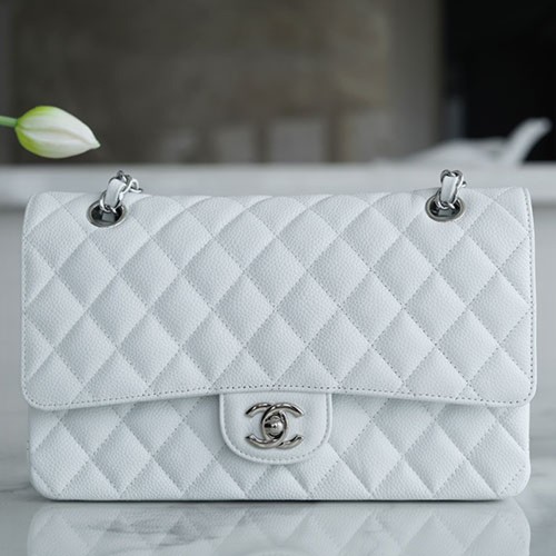 • 샤넬 클래식 미디움 캐비어 화이트