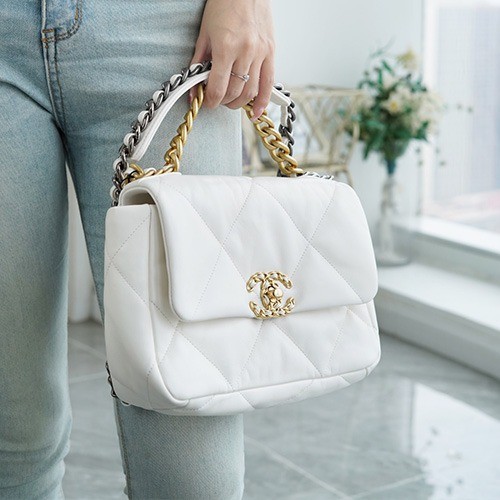 • 샤넬 19 탑핸들 플랩백 램스킨 금장