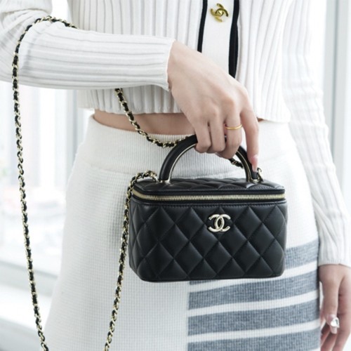 • 샤넬 베니티 탑 핸들백 미니 블랙 금장
