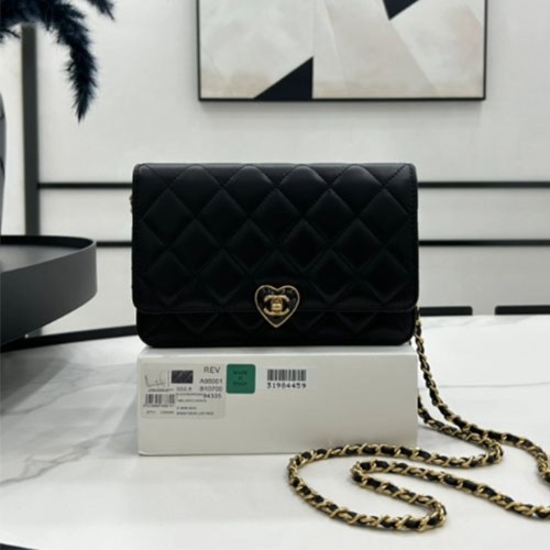 • 샤넬 하트 로고 램스킨 woc