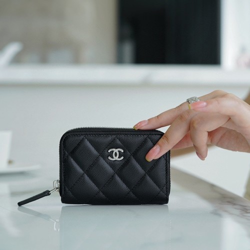 • 샤넬 클래식 지퍼 동전 지갑 캐비어 은장 AP0216
